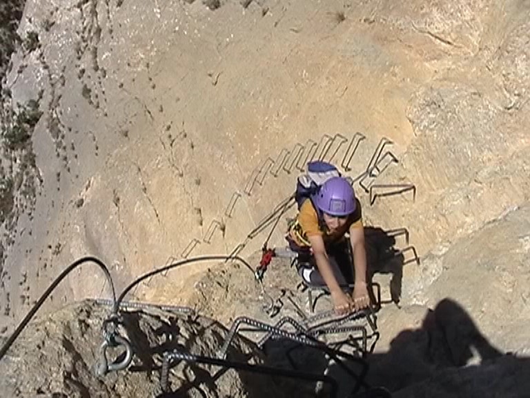Située dans un coin désert des Alpes de Haute Provence, cette via très aérienne (parfois athlétique) est mémorable pour son impressionnante passerelle de 59m suspendue à 200m du sol, et son récent pont népalais où il est écrit en guise d'avertissement: "passage qui nécessite force, équilibre et mental".
